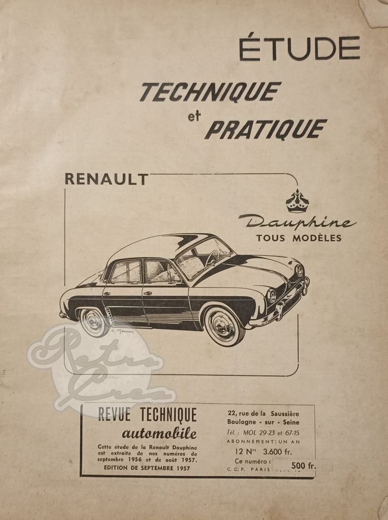 Revue Technique Etude RTA Renault Dauphine 56-58 sept-57