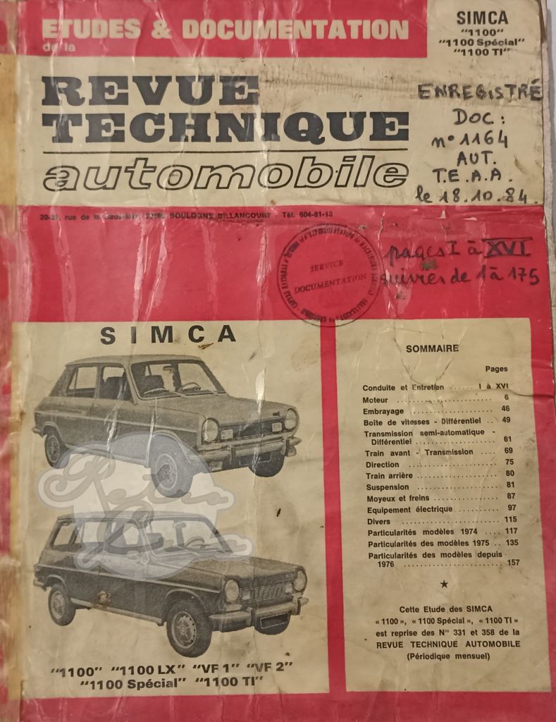 Revue Technique Etude RTA Simca 1100 1100S 1100TI