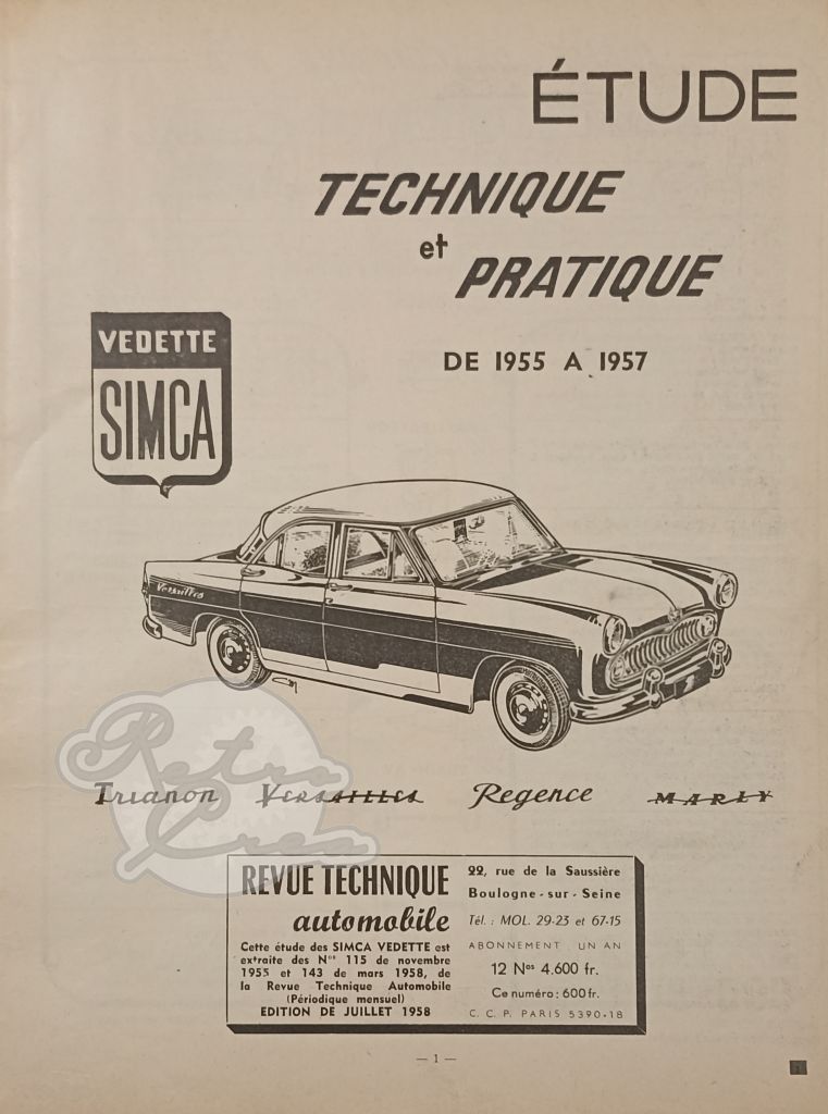 Revue Technique Etude RTA Simca Vedette 55-57 juil-58
