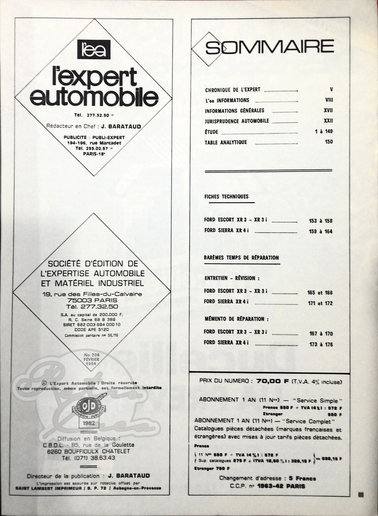 Revue Technique L’Expert Automobile Ford Escort XR3 XR3i