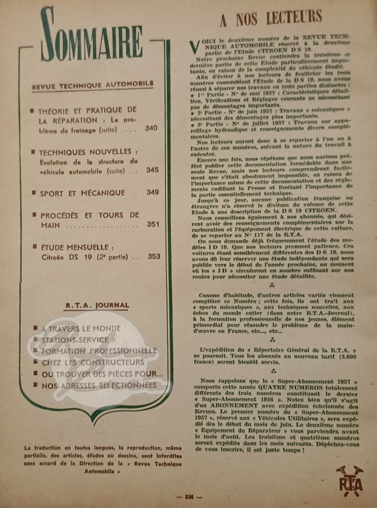 Revue Technique RTA Citroën DS19 (partie 2)
