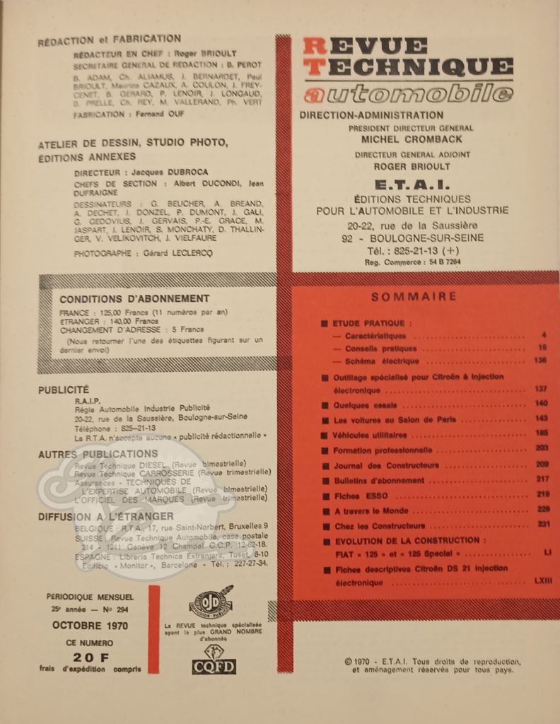Revue Technique RTA Citroën DS21 Injection éléctronique