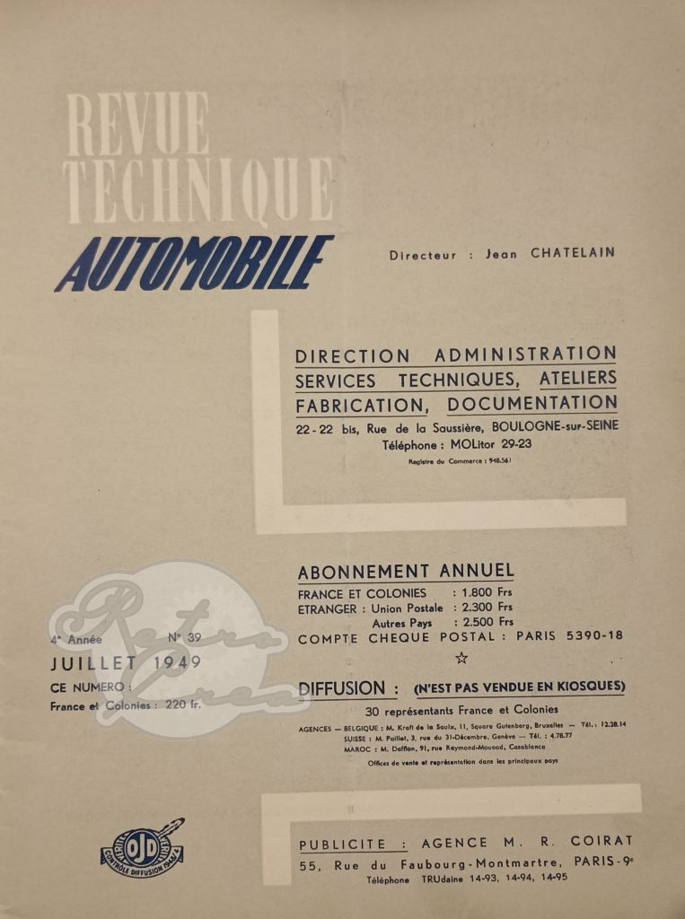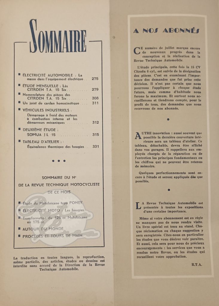 Revue Technique RTA Citroën Traction 15 Six D et G. Somua JL 15