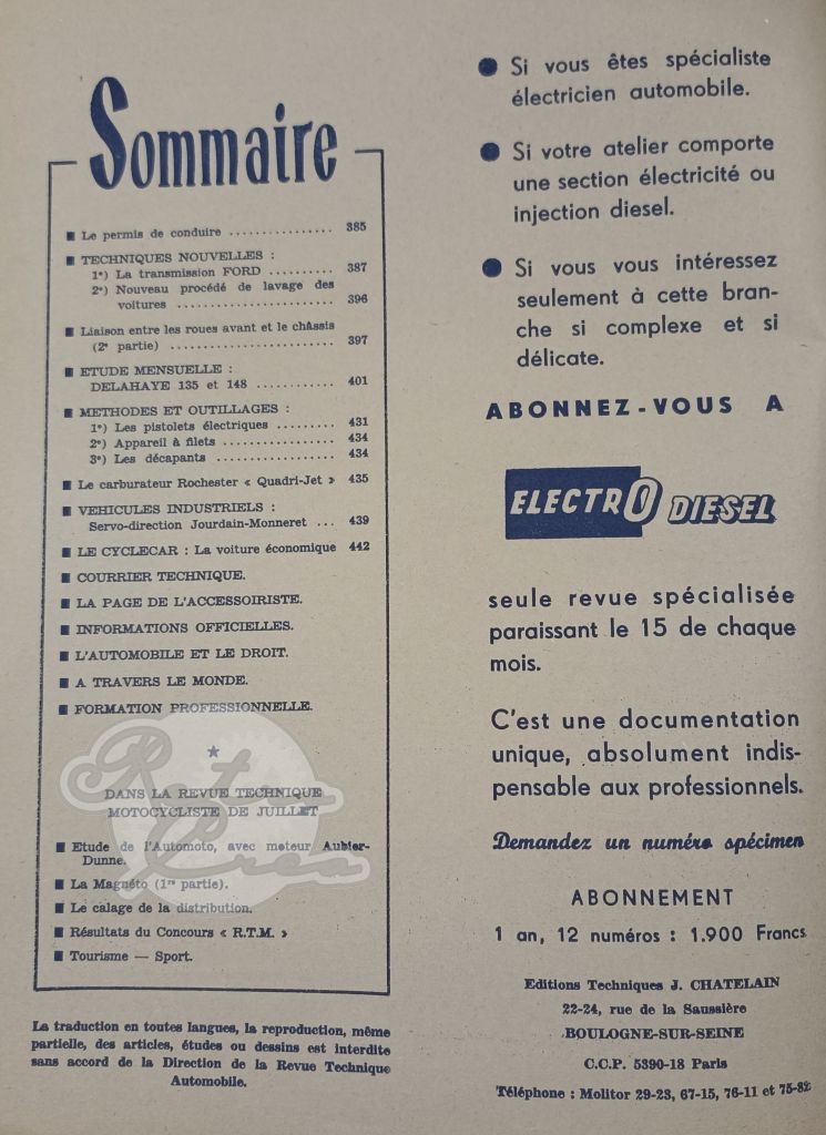 Revue Technique RTA Delahaye 148L