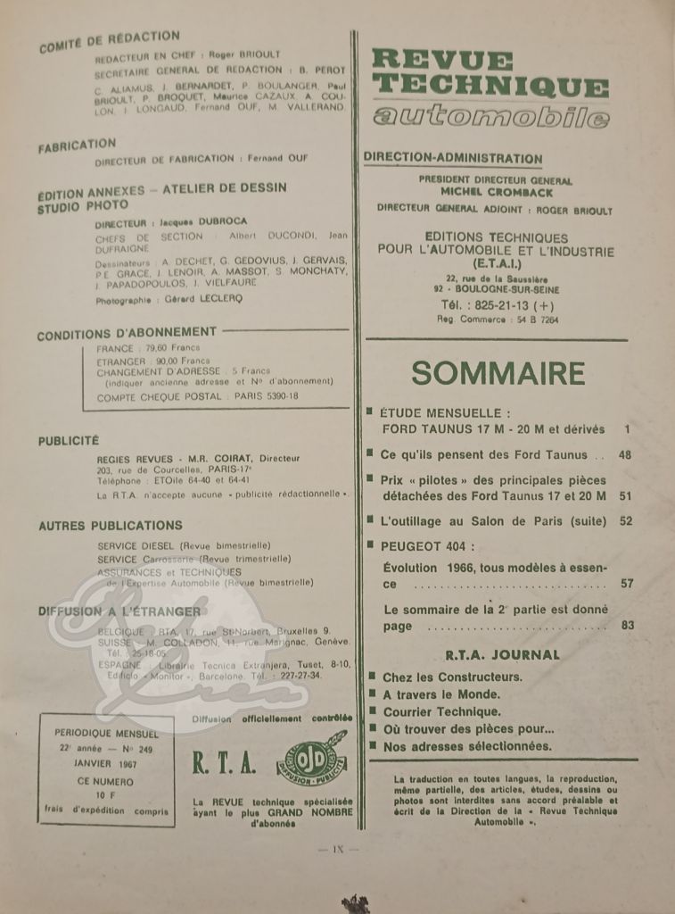 Revue Technique RTA Ford Taunus 17M, 20M, 20MTS (P5)