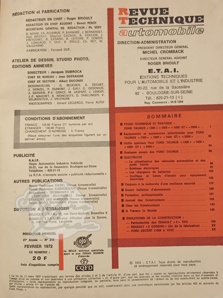 Revue Technique RTA Ford Taunus TC