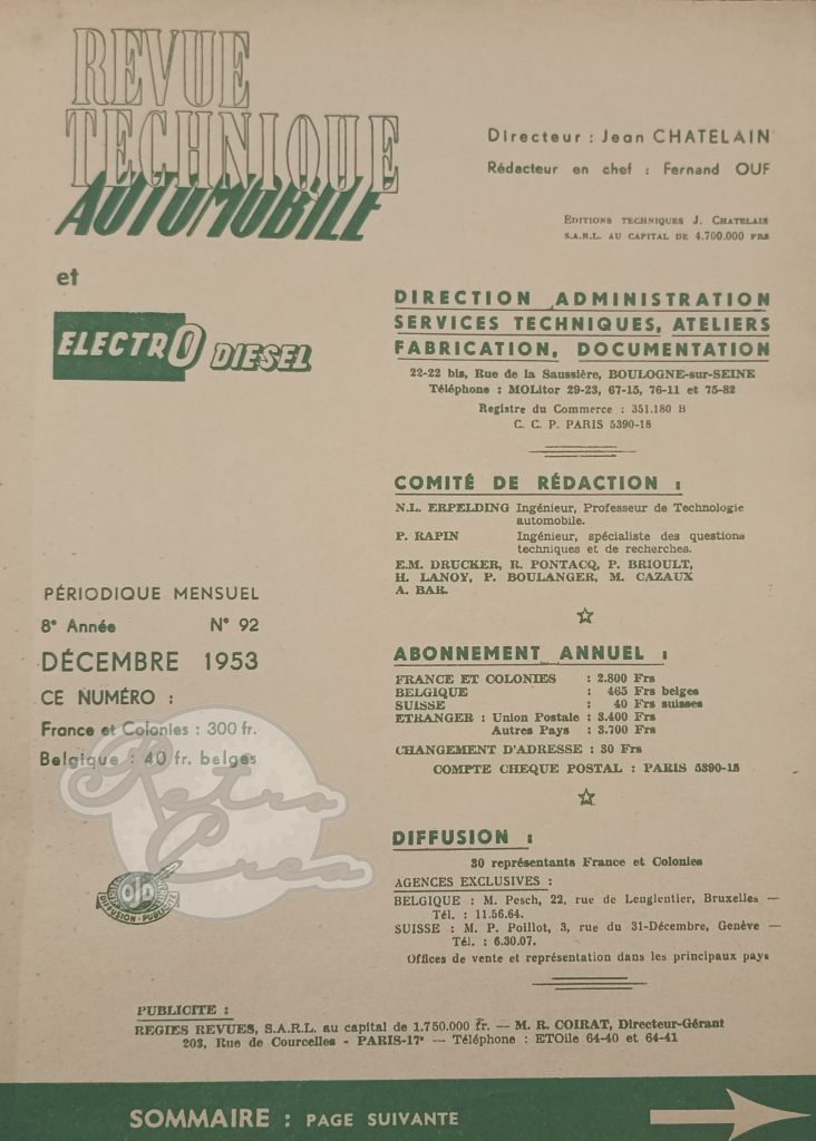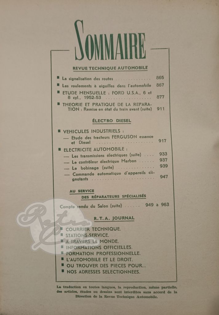 Revue Technique RTA Ford USA 1952-53 (6 & 8 cyl). Ferguson TE, TEA, TEC, TEK, TEF (partie 1)