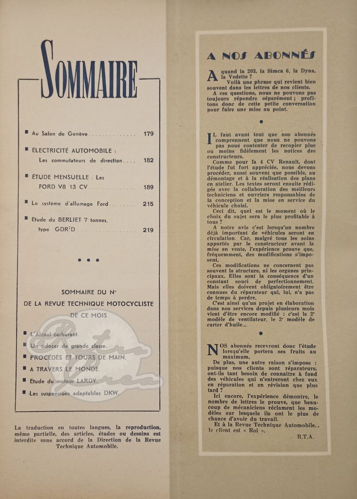 Revue Technique RTA Ford V8 13cv. Berliet GDR 7D 7t