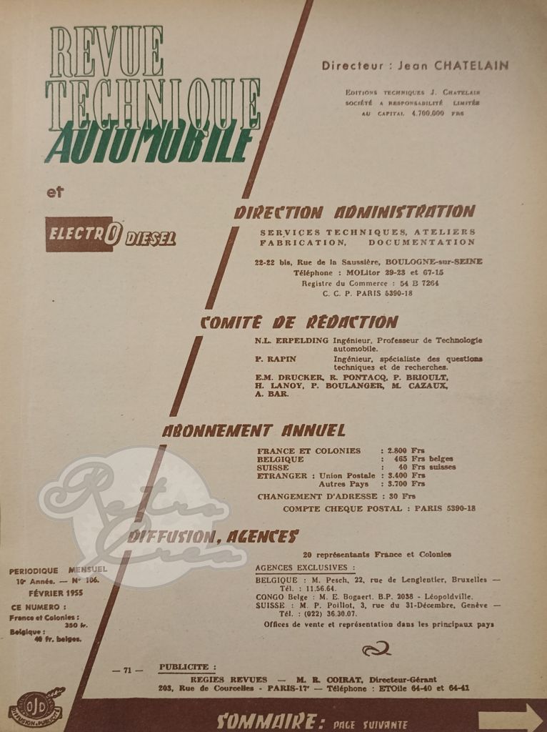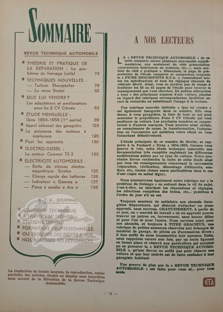 Revue Technique RTA Panhard Dyna Z 1954-55 (partie 1)