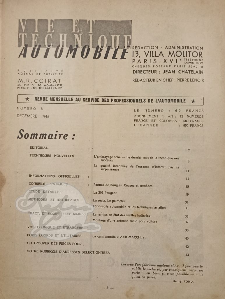 Revue Technique RTA Peugeot 202