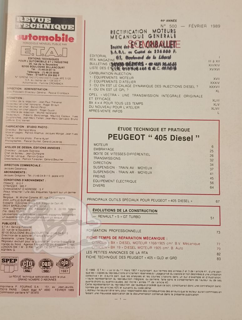 Revue Technique RTA Peugeot 405 Diesel, Turbo D