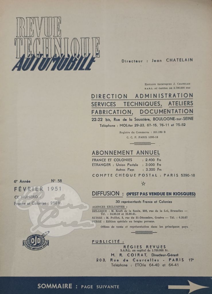 Revue Technique RTA Renault 1000kg et 1400kg (R2060, R2061)