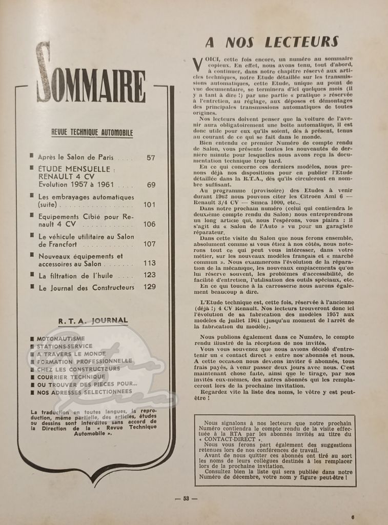 Revue Technique RTA Renault 4cv 1957-61