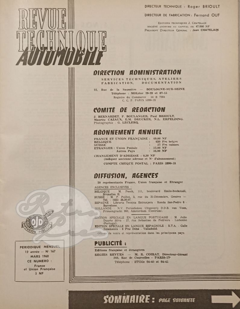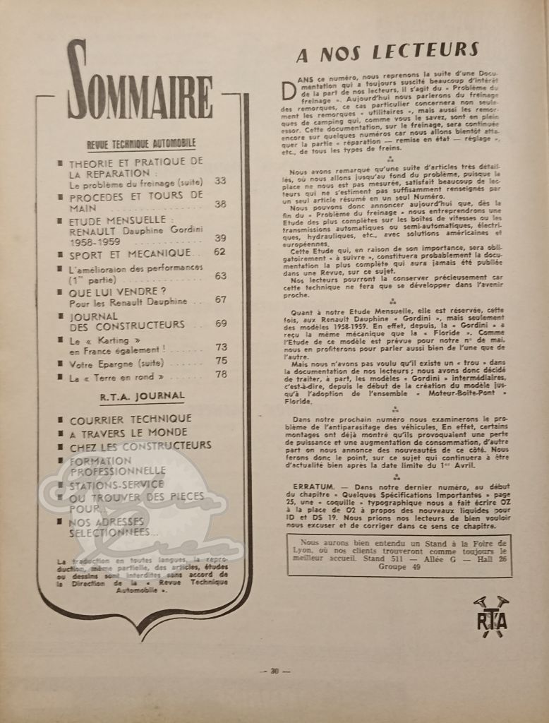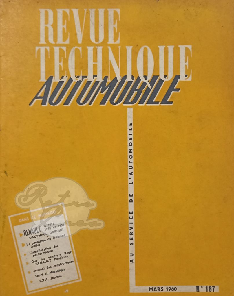 Revue Technique RTA Renault Dauphine Gordini R1091 1958-59