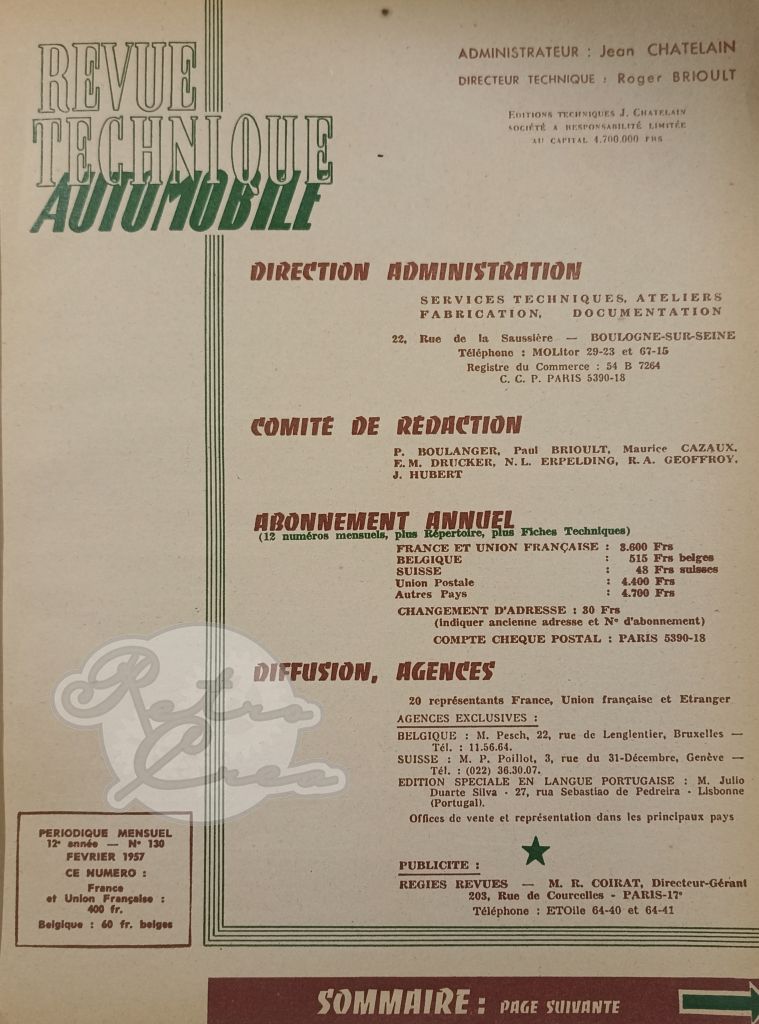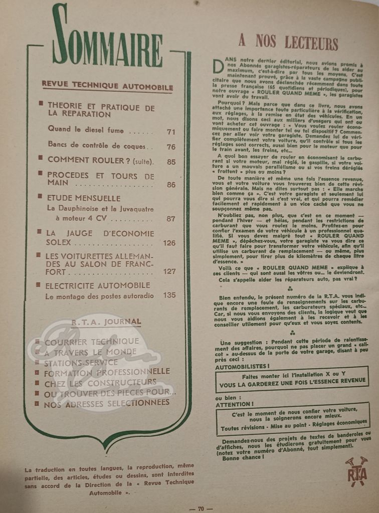 Revue Technique RTA Renault Dauphinoise, Juvaquatre R2100, R2101