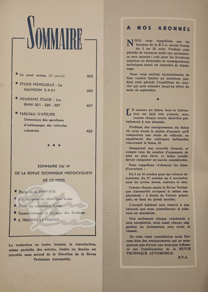 Revue Technique RTA Salmson S4 61, S4 DA