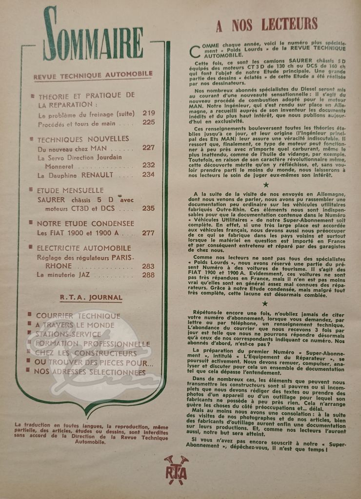 Revue Technique RTA Saurer 5D. Fiat 1900, 1900A