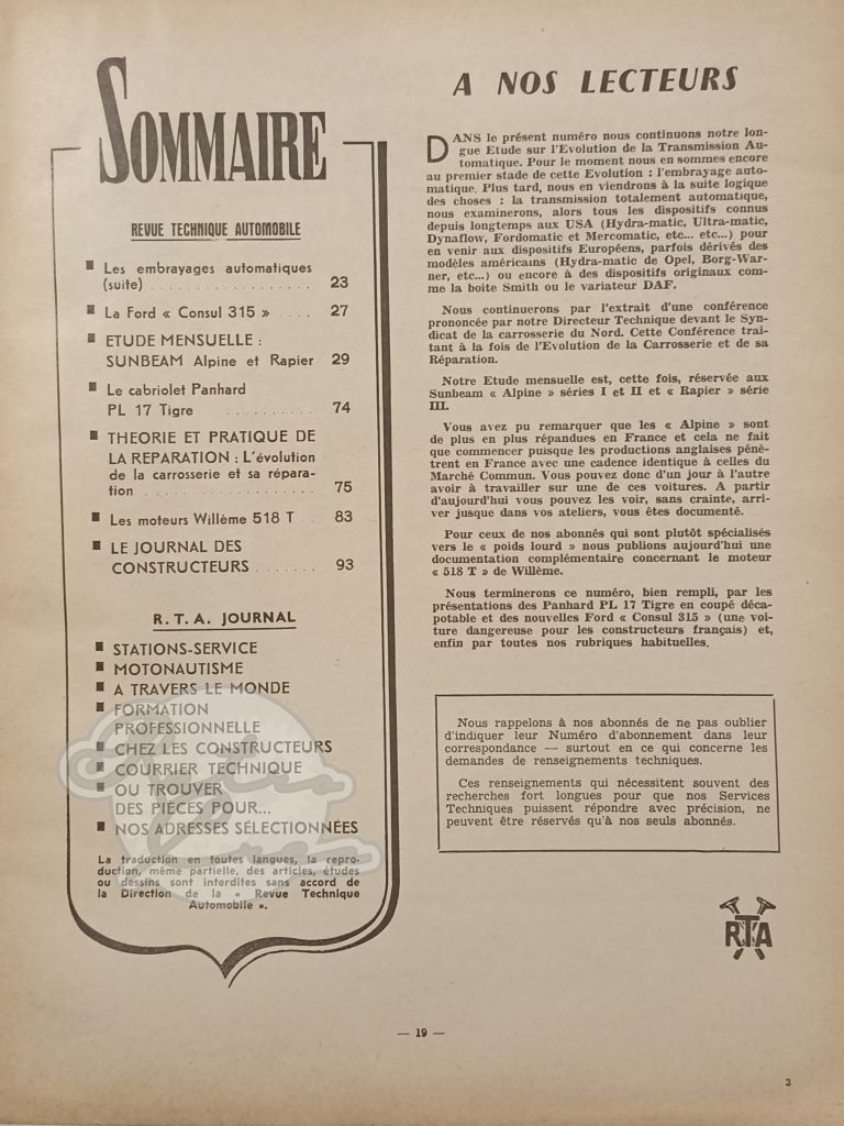 Revue Technique RTA Sunbeam AlpineI, II, Rapier III, IIIA. Willeme (partie 3)
