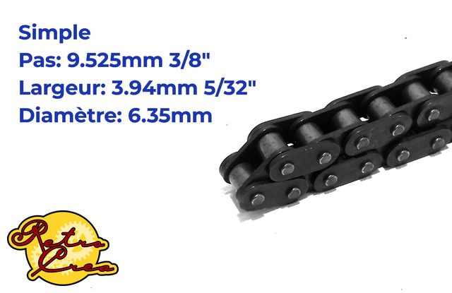 – Pas: 9,525 mm ; 3/8 pouces