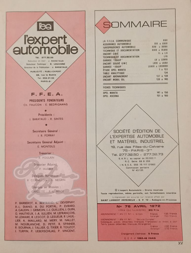Revue Technique L’Expert Automobile Opel Manta 1200S 1600S 1900S